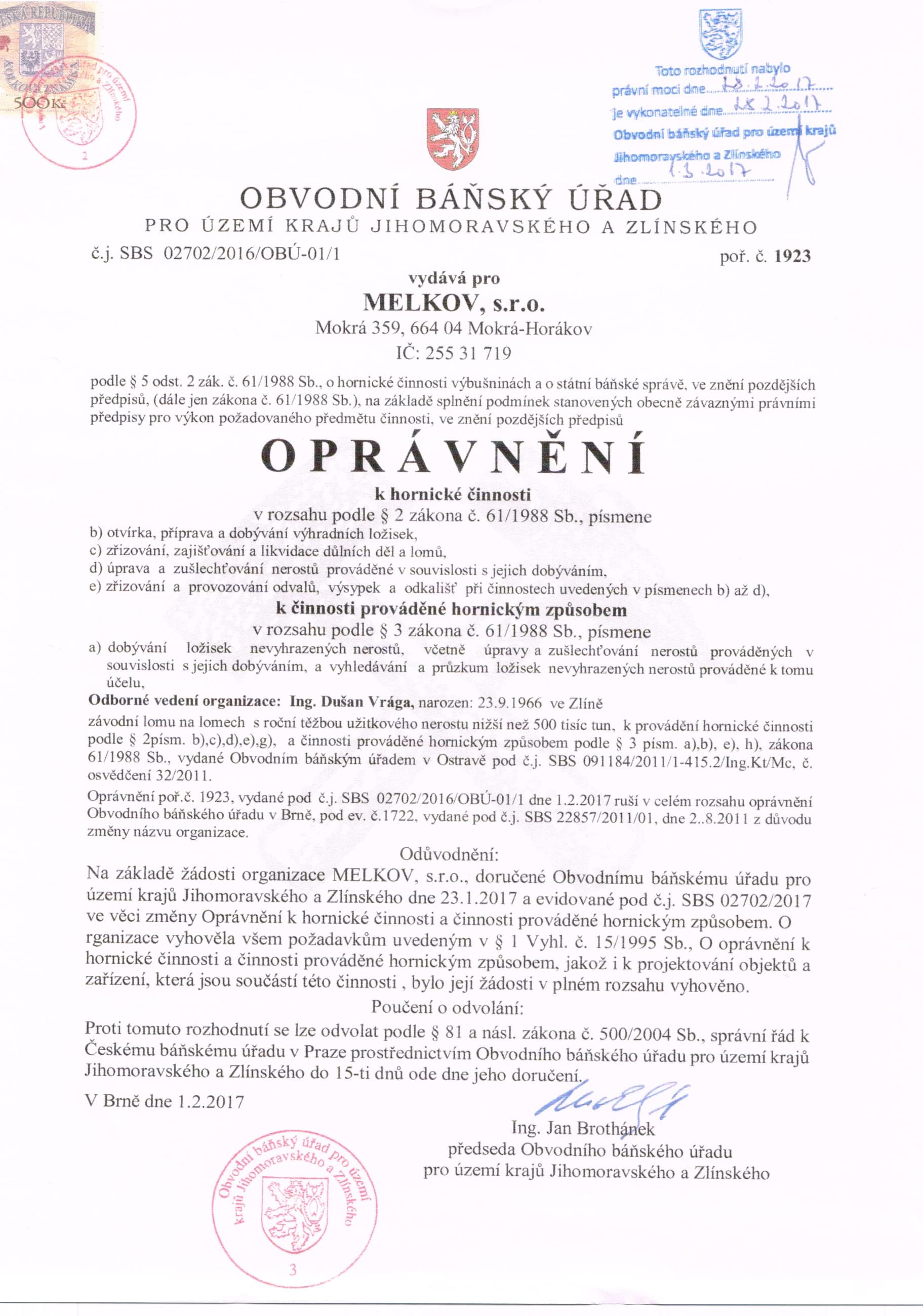 Oprávnění k hornické činnosti a k činnosti prováděné hornickým způsobem