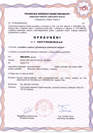 Oprávnění k montáži a opravám vyhrazených zdvihacích zařízení
